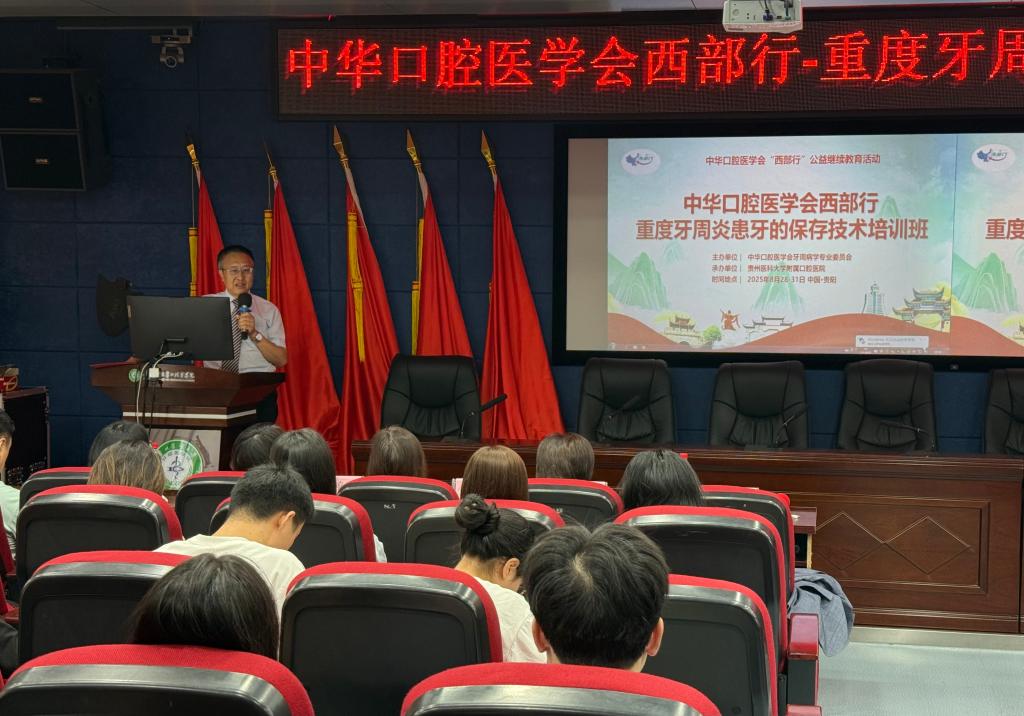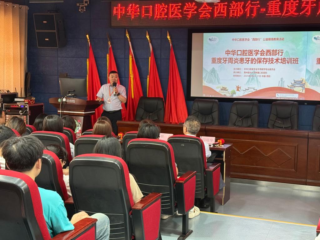 8月28日至31日,由中华口腔医学会牙周病学专业委员会主办,我院承办的“西部行——重度牙周炎患牙的保存技术培训班”在贵阳市成功举行。本次培训聚焦重度牙周炎患牙保存技术,旨在提升参训人员的规范化操作能力与综合诊疗水平,促进学科交流与区域均衡发展。来自全国各地的100余名学员齐聚贵阳,共同探讨牙周疾病防治新理念、新技术和新实践。