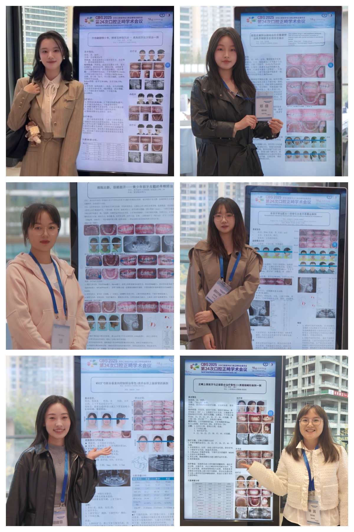 会议期间,团队成员认真聆听专家讲座,围绕数字化正畸、隐形矫治、复杂错颌畸形治疗、正畸教学与人才培养等热点议题展开深入交流,积极汲取国内外先进的诊疗技术与教学理念。值得一提的是,胡笳和邓倩的病例报告入选大会壁报展示;顾叶婷、钟润、胡建荣、李文艳、胡笳和邓倩投稿的共8篇病例报告均被会议收录,内容涵盖儿童早期矫治、复杂拔牙矫治、种植支抗技术应用及三维数字化技术等多个前沿与难点领域,体现了科室扎实的临床功底与循证医学实践。