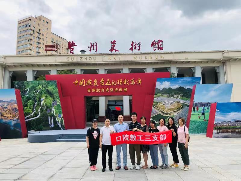 百年历程,沧桑巨变。百年华诞,举国欢庆。在中国共产党的领导下,中华民族从苦难中走出来,而今傲然屹立于世界民族之林。为喜迎建党100周年,重温革命历史,弘扬爱国主义精神,激发党员爱国热情,时刻不忘入党初心、牢记肩头使命,筑牢拒腐防变的思想防线,做到廉洁自律、警钟长鸣,永葆共产党人“为人民群众服务”的政治本色。6月25日,永利yl23411官网附属口腔医院教工三(口外)支部以贵州省美术馆举办的“庆祝中国共产党成立 100 周年主题展览”组织全体党员、预备党员、积极分子开展“廉政党风学党史·书画光影映初心 ”主题活动。