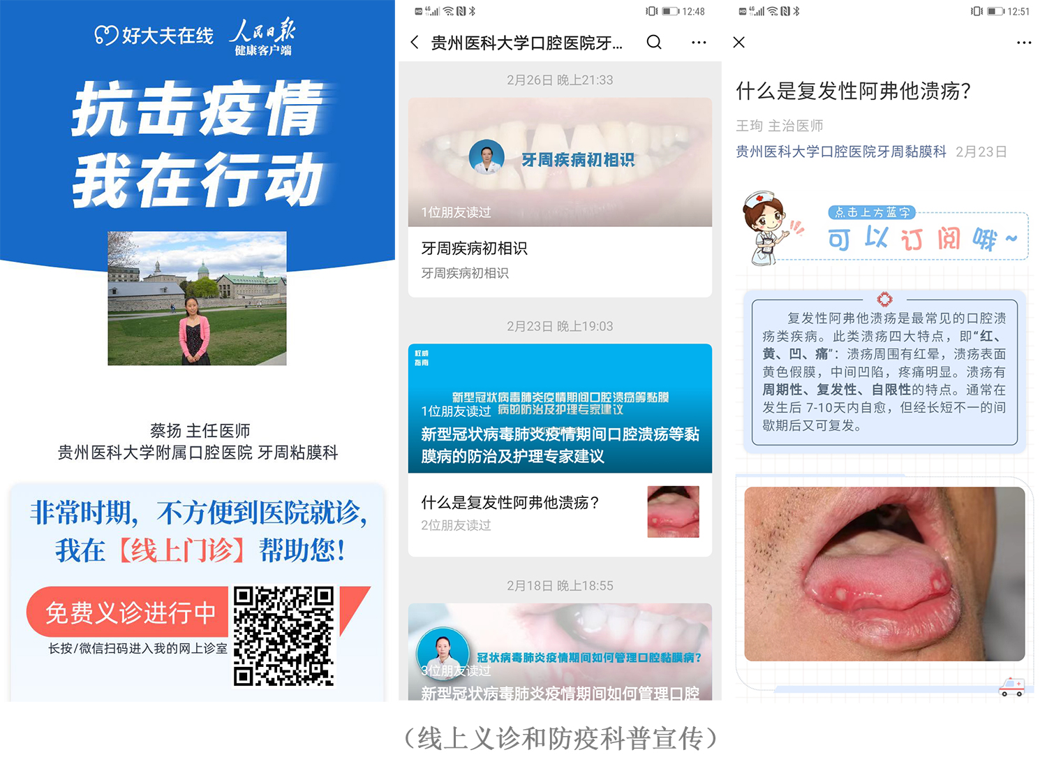 抗疫的第二阶段:在抗疫取得阶段性胜利后,为全面落实上级“一手抓抗击疫情、一手抓恢复生产”的要求,3月份开始,支部带领科室积极为全面开诊做准备。牙周黏膜党小组及时在科室公众号发布“牙周黏膜科疫情期间就诊须知”,在严格院感防控和医护防护的前提下,科学有序复工复产,党员同志带头投入临床工作,解决口腔患者的诊疗需求。