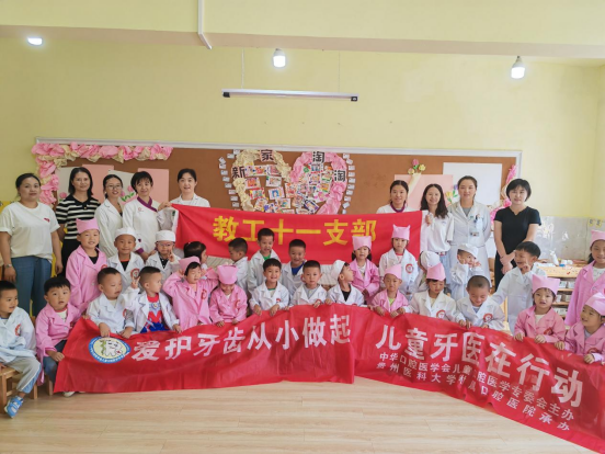 近日,教工第十一党支部(预防及儿童口腔科)组织多名科室骨干及党员干部走进红黄蓝幼儿园、乌当幼儿园开展“爱护牙齿从小做起,儿童牙医在行动”主题党日活动,为近400余名孩子免费进行口腔诊疗服务和口腔保健知识宣教活动。
