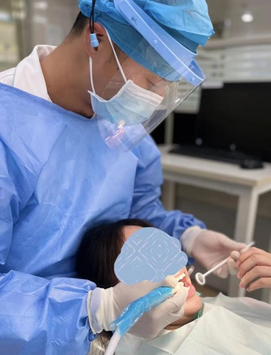 牙周粘膜科医师李志远坚守岗位,为患者治疗