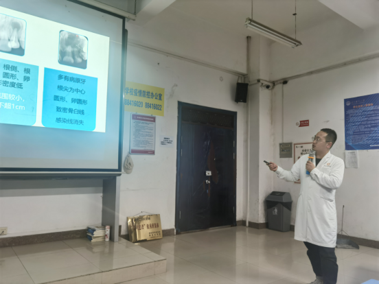 2021年12月,肖鹏曾参与到下乡帮扶工作中,致力于为患者服务的宗旨,下乡帮扶期间积极参与义诊、健康宣教等社会活动,在下乡之余仍然坚守岗位,做好影像科机房及报告工作。在新学期来临之前,会主动参与口腔颌面影像诊断学教研室工作,认真备课,在试讲时获得了教管科领导的好评,并给2018级口腔班的同学们带来了一场生动有趣的新课程。