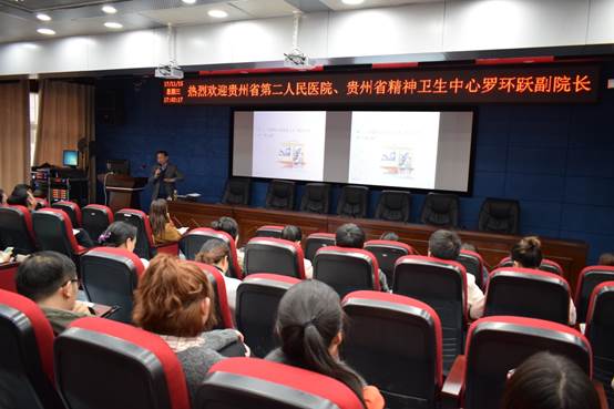 为学习贯彻党的十九大精神,进一步提升我院广大教职医护员工身心健康水平,使医护人员能以积极乐观的心态更好地投入到新时期医院发展建设的各项工作。11月15日下午,yL23411永利在北校区老药学楼五楼学术报告厅举办了第十二期人文文化管理讲座,我院特邀贵州省第二人民医院、省精神卫生中心副院长罗环跃教授来院作《用沟通成就快乐人生》心理健康专题讲座。讲座由yL23411永利党委书记张军梅主持,院党政领导班子以及全院教职医护员工代表共90余人聆听了讲座。