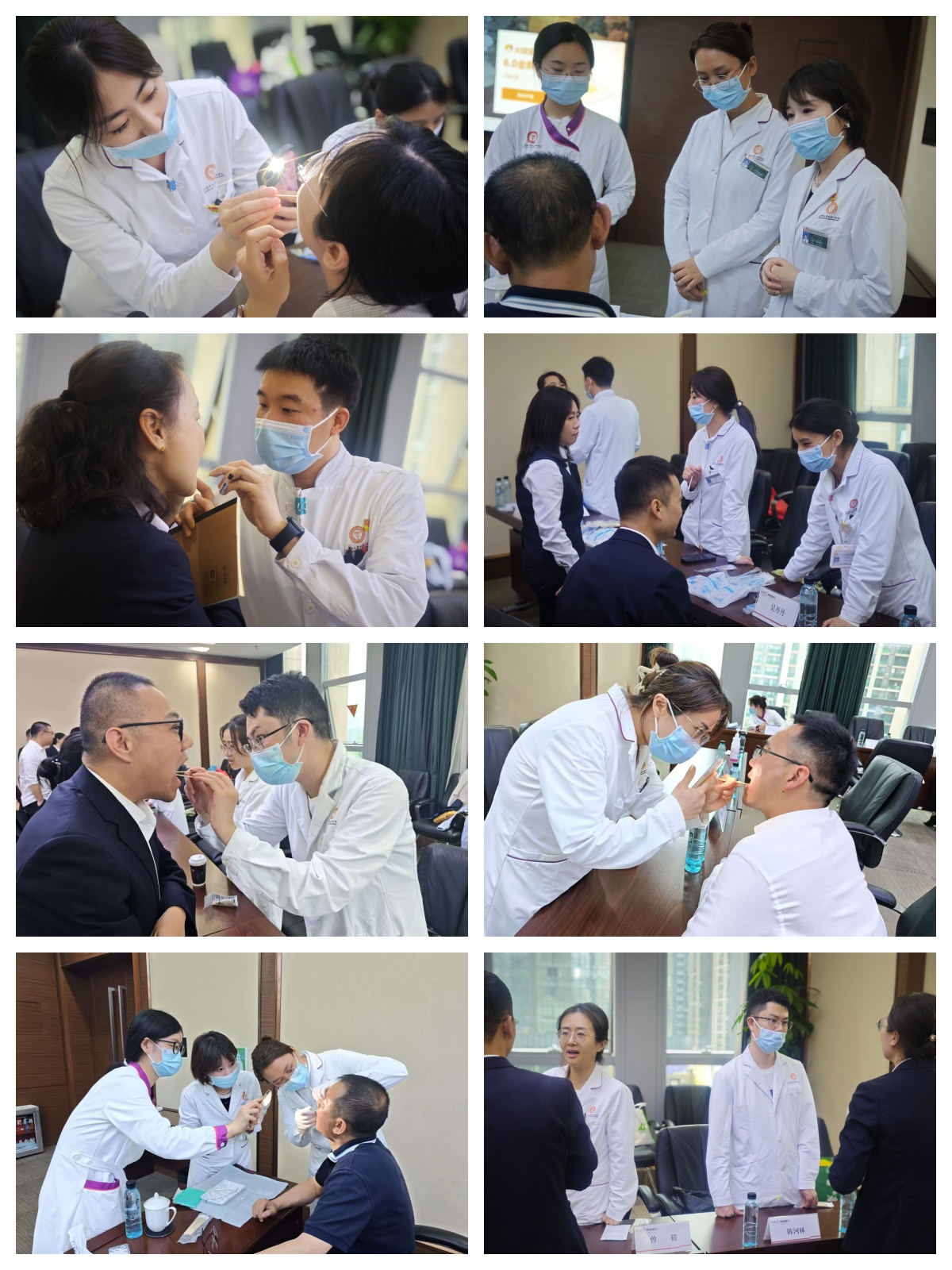 活动现场,医护团队为贵阳银行职工开展涵盖牙龈健康状况、口腔黏膜病变、龋齿、牙列缺损等方面的口腔检查,针对职工提出的各类问题逐一解答,并提供专业的治疗建议;护理人员同步为大家测量血压,发放保健用品,指导正确的刷牙方法和牙线使用技巧,并开展口腔护理科普宣教,帮助大家掌握科学的口腔护理方法。