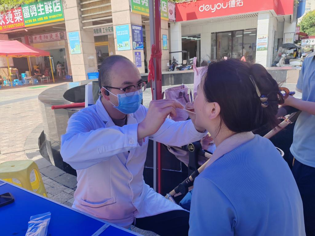 活动现场,医生团队为社区居民提供免费的口腔检查服务,包括牙齿清洁度评估、龋齿检查、牙周状况检查等,耐心解答居民关于口腔疾病的各类疑问。针对居民不同的口腔问题,给出了个性化的口腔治疗建议。同时,医护人员用通俗易懂的语言向居民介绍了常见的口腔疾病、预防方法及正确的口腔护理知识,并在现场示范了正确的刷牙方法和牙线使用技巧,邀请居民亲自体验,及时纠正他们的错误动作。此外,还为居民免费测量血压,发放口腔健康宣传资料。