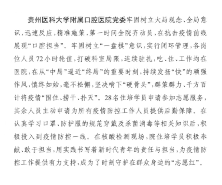 我院党组织带领党员投身疫情防控一线,以实际行动践行初心使命,充分发挥基层党组织战斗堡垒作用和共产党员先锋模范作用的简文,选入贵州省医院党建工作指导委员会办公室工作简报,内容详情如下: