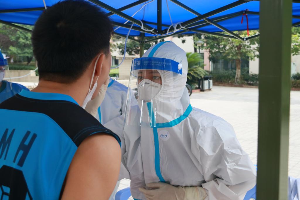 工作人员携带物资到校区外为学生采集核酸
